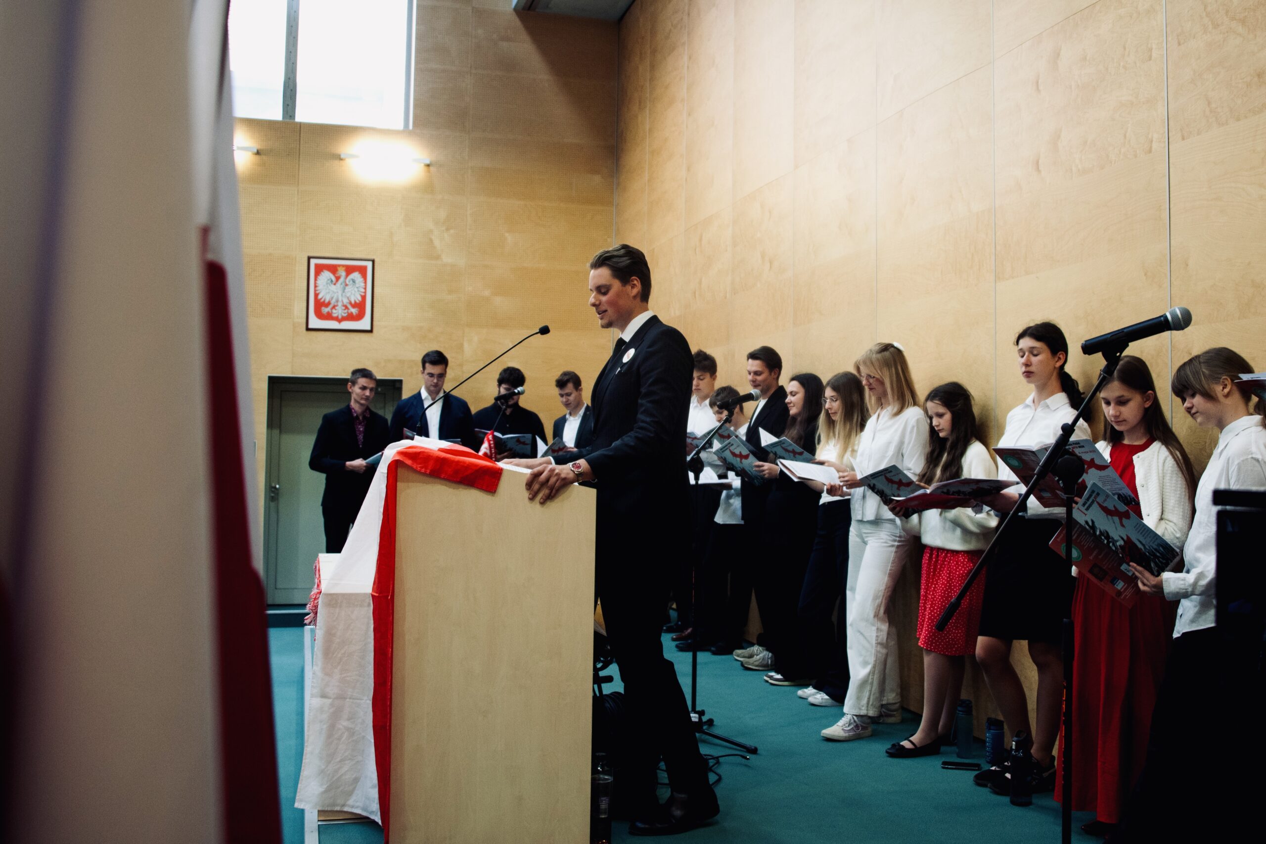 Niebywałe! Wspaniała I Lekcja Śpiewania Pieśni Patriotycznych WPiA UKSW przeszła do historii! Ponad 30-osobowa wyćwiczona grupa sceniczna połączyła się z ponad 100-osobową salą, łącząc emocje